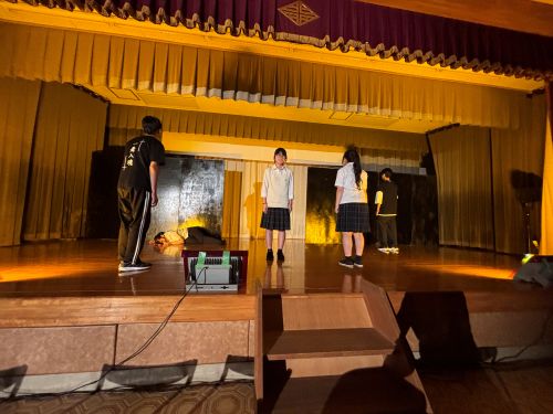 悪天候の中での実施となりましたが、100名近くの方にご来場頂き、生徒たちにとって貴重な経験となりました。この公演が地域の方々の心に届く舞台になっていれば幸いです。本公演を主催して頂いた幡生地区社会福祉協議会の皆様、公演にご協力頂いた下関警察署、小串警察署の皆様、そして、ご来場頂いた皆様に御礼申し上げます。