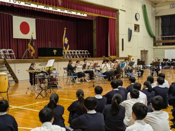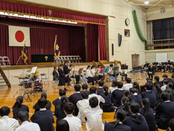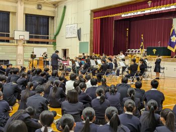 22日は吹奏楽部との合同練習、生徒会の交流、教員の情報交換を行い、23日は、全校生徒が参加し、姉妹校交歓式典、鹿児島商業高校音楽部と下商吹奏楽部との合同演奏会を行いました。