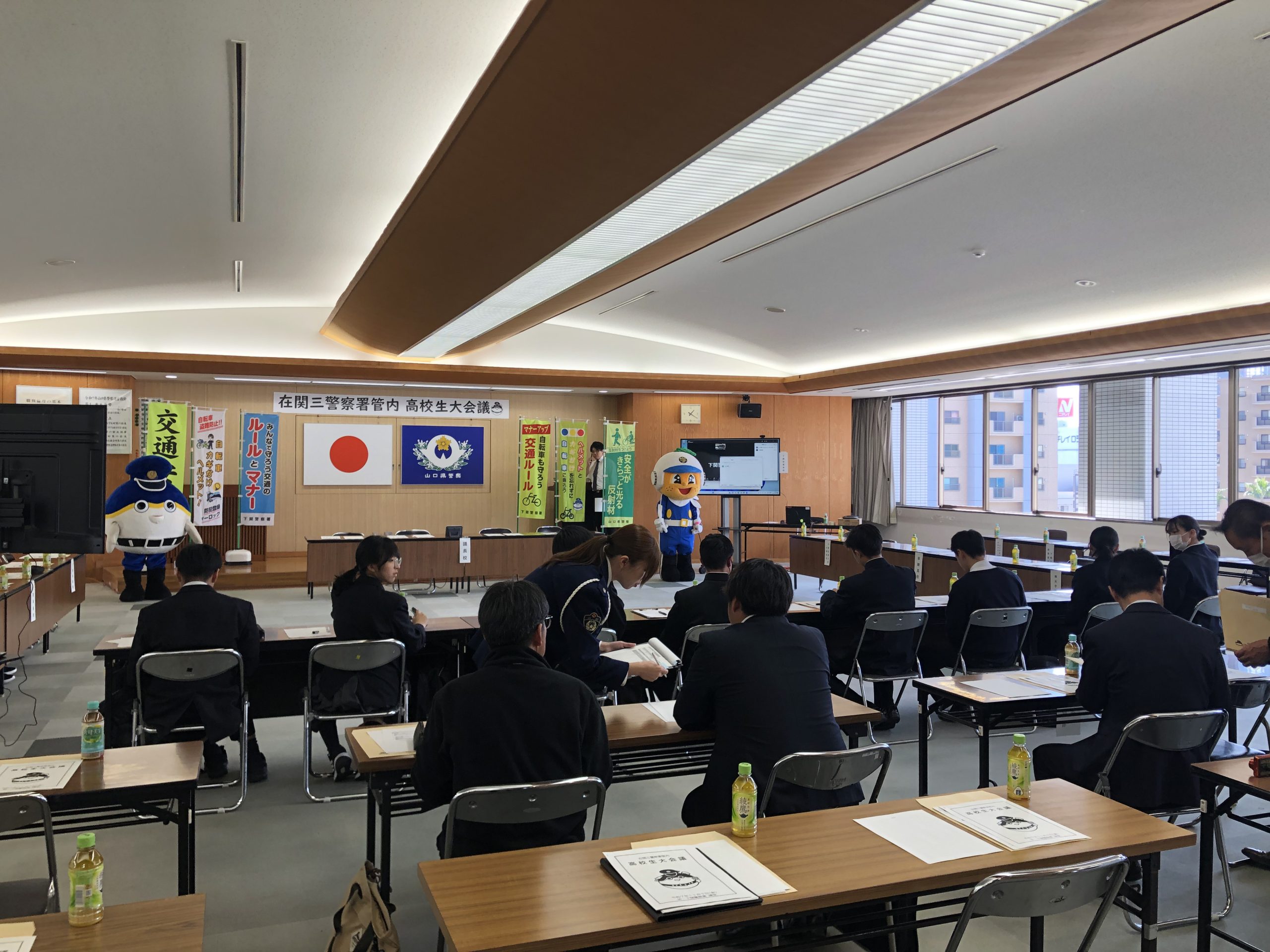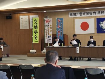 下関警察署主催の「在関三警察署管内高校生大会議」に代表生徒4名が参加しました。今回は以下の2つのテーマについて市内の高校生が意見を交換しました。