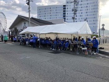 11月2日に行われた「海響マラソン」の応援演奏に、ISHIN吹奏楽団、彦島中学校、玄洋中学校の吹奏楽部の皆さんと参加しました。今年は他団体と演奏する機会が多く、部員にとっても貴重な体験ができました。