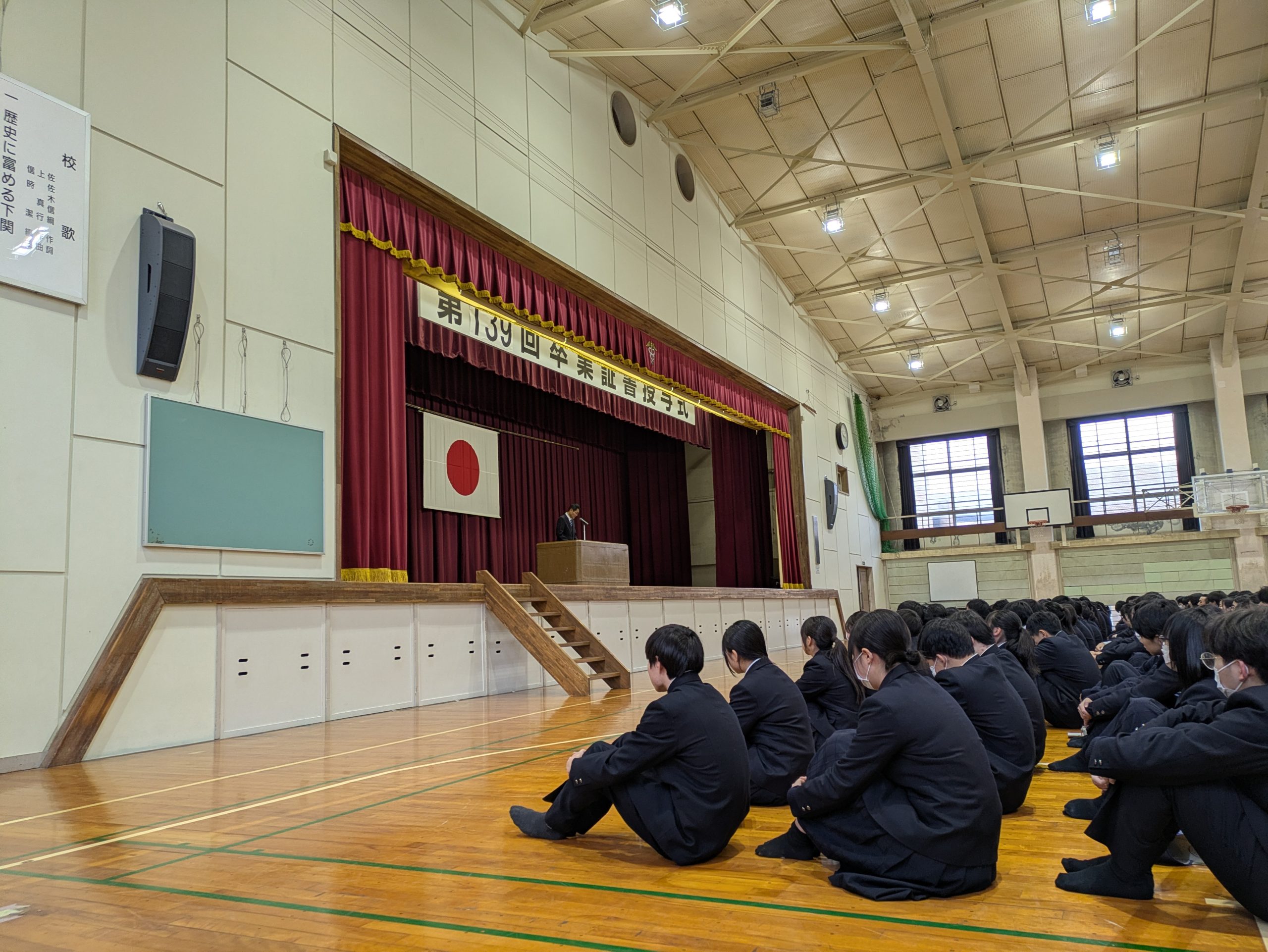 卒業後の進路が決まった3年生の皆さん、卒業式までの登校日数は残り22日です。就職する人は社会人としての自覚を、進学する人は入学後の学習に備えた準備を、今から始めてください。残された時間は、次のステージへ向けて自分を高める大切な時間です。