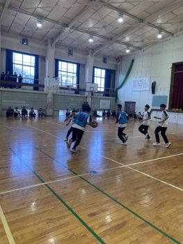 バスケット、バレーボールの優勝チームと教員チームがドリームマッチを行い、とて