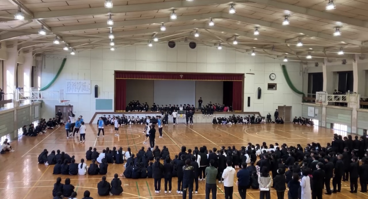 バスケット、バレーボールの優勝チームと教員チームがドリームマッチを行い、とて