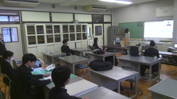 2月2日(月)LHRでは「3年生による講話」として、進路が決定した3年生から高校生活を振り返って後輩たちへのアドバイスをしてもらいました。進路先が就職、公務員、大学進学から計6名の3年生に、進路選択でのポイント、進路実現に向けての取組、高校生活で特に頑張ったことなどについて話してもらいました。先輩たちの分かりやすく親しみやすい話を聞いて、1,2年生のみなさんは今後の進路選択・進路実現の参考にできたのではないかと思います。