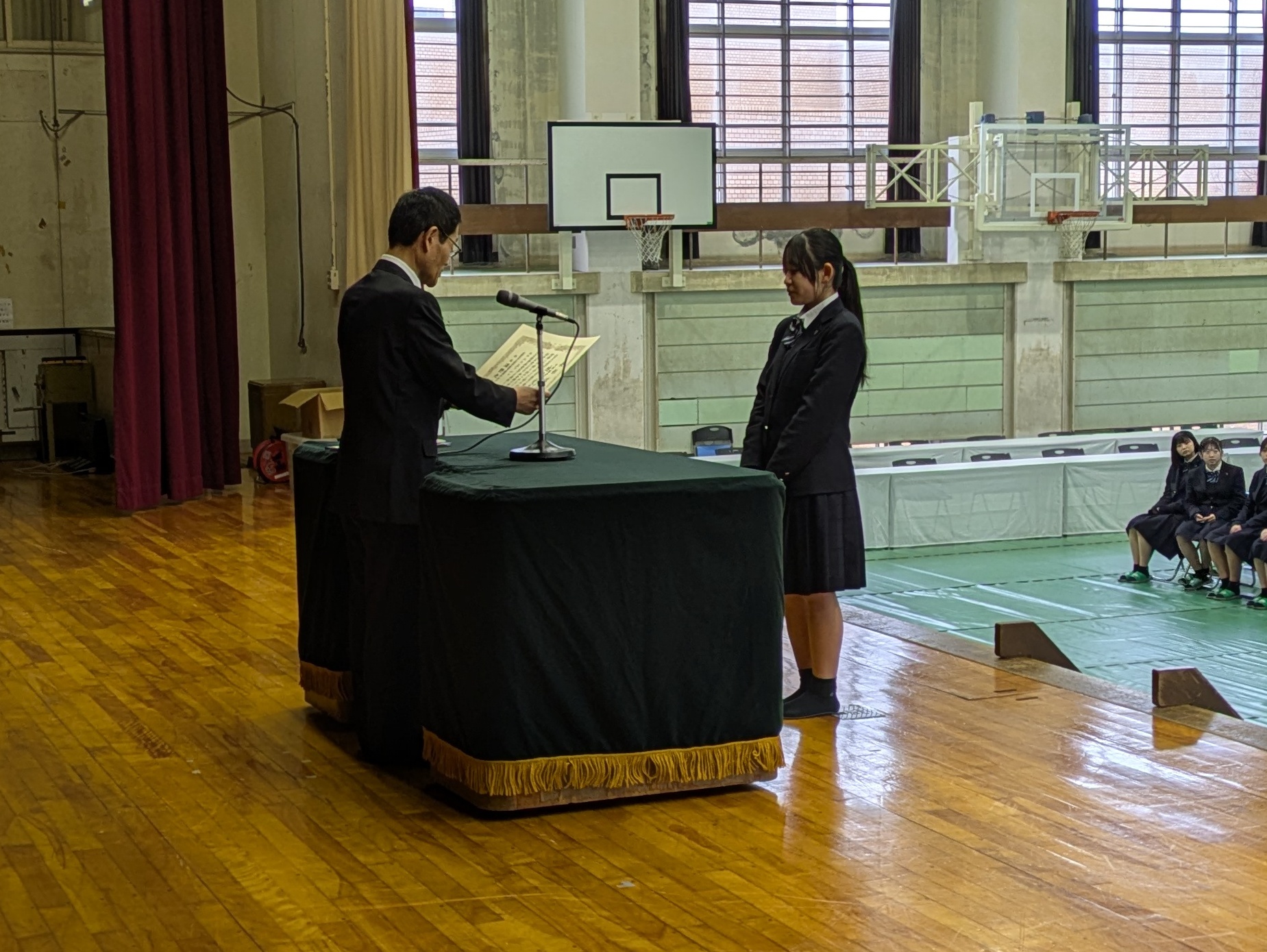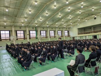 校内外賞 授賞式(2026.2.27) 学校行事 2026.03.01 令和7年度卒業証書授与式に先立ち、校内外表彰の表彰式を行いました。 今年度の受賞者一覧→こちら 学業において優秀な成績を収めた生徒、資格取得において顕著な成果を挙げた生徒、部活動において日々の努力を重ねた生徒、3年間皆勤した生徒他、優れた実績を残した生徒が表彰されました。 三年間、それぞれの目標に向かって真摯に努力を積み重ねてきた成果が実を結び、晴れやかな表情で表彰を受ける姿が印象的でした。 受賞された皆さんの今後のさらなる活躍を期待します。