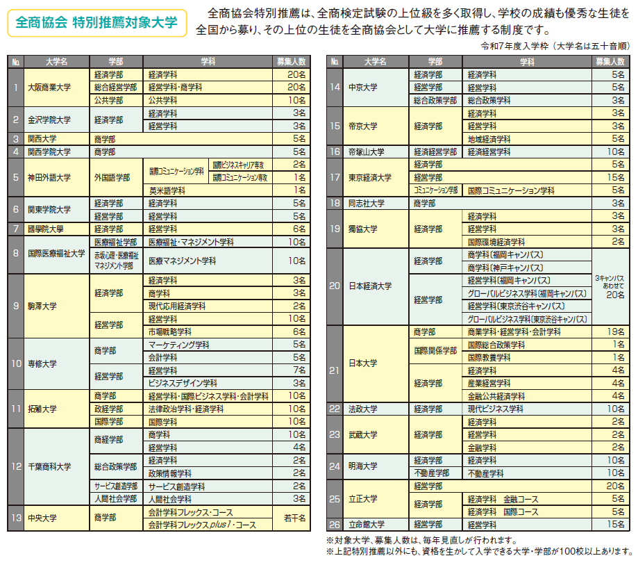 将来、商学部・経営学部・経済学部をはじめ、情報関連学科・国際関連学科などへの進学を希望している人は、資格を取得することで、推薦入学を受けられたり、入試科目の選択の幅が広がったりと、大学進学へのより有利な道がひらかれることになります。